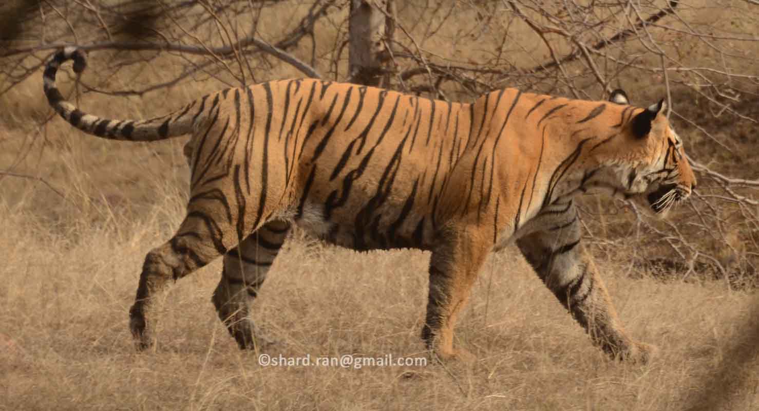 A shy and dominant tiger in zone 4 and 5. It is a resident tiger from Singh Dwar, Gular Kui, Tama Khan, Kachida, Dakada and Bakhola. He has been noticed in lake area a few times. Now days, he has extended his territory in Berada and Semali area too.