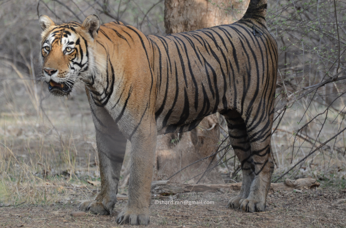 A dominant tiger of Thumka, Bhind and Talada range at Ranthambhore Tiger Reserve area. He roams from Thumka to Chiroli and Anantpura area, occasionally coming up to Kachida Vallay.